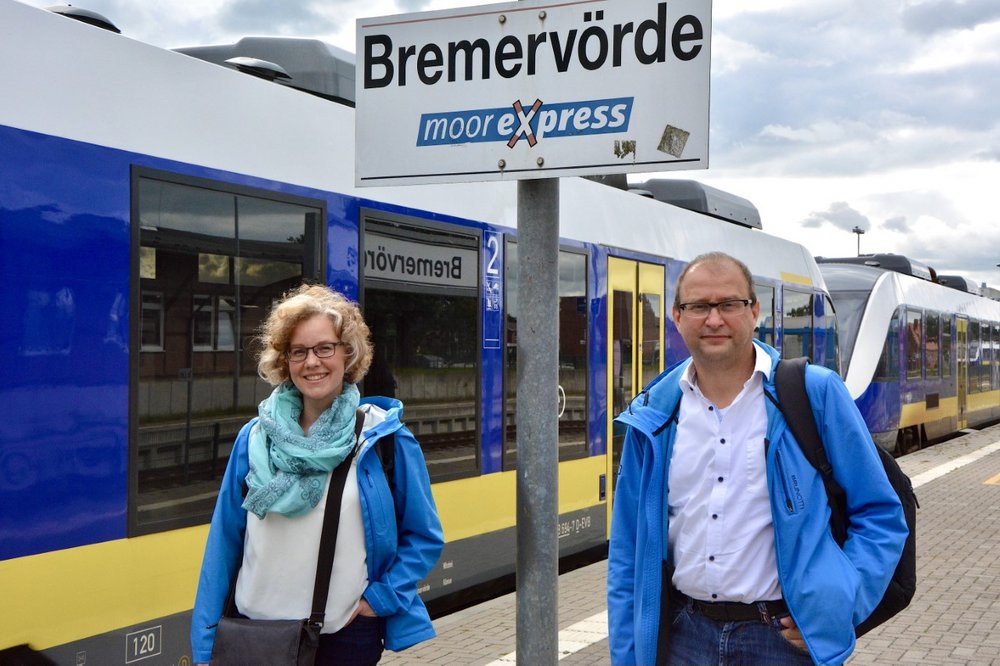 Der Umwelt zuliebe setzen beide in ihrem Privatleben auf das Fahrrad – Verlinden hat eigenen Angaben zufolge bislang noch nicht einmal ein eigenes Auto besessen. Zudem reisen beide gerne mit dem Zug. Da war es keine Überraschung, dass Verlinden und Hake im Vorfeld der Veranstaltung nach ihren jeweiligen vorherigen Terminen gemeinsam am Bremervörder Bahnhof eintrafen. Der folgende Diskussionsabend zum Thema „Wege aus der Klimakrise“ im Hotel Daub war denn auch gut besucht – sogar die parteilose Landratskandidatin Dr. Gabriele Hornhardt war kurzfristig extra aus Kirchwalsede angereist. So entstand -zusammen mit den zahlreichen Gästen- eine lebhafte und interessante Diskussion, nachdem Verlinden zuvor ihre Punkte vertreten hatte.